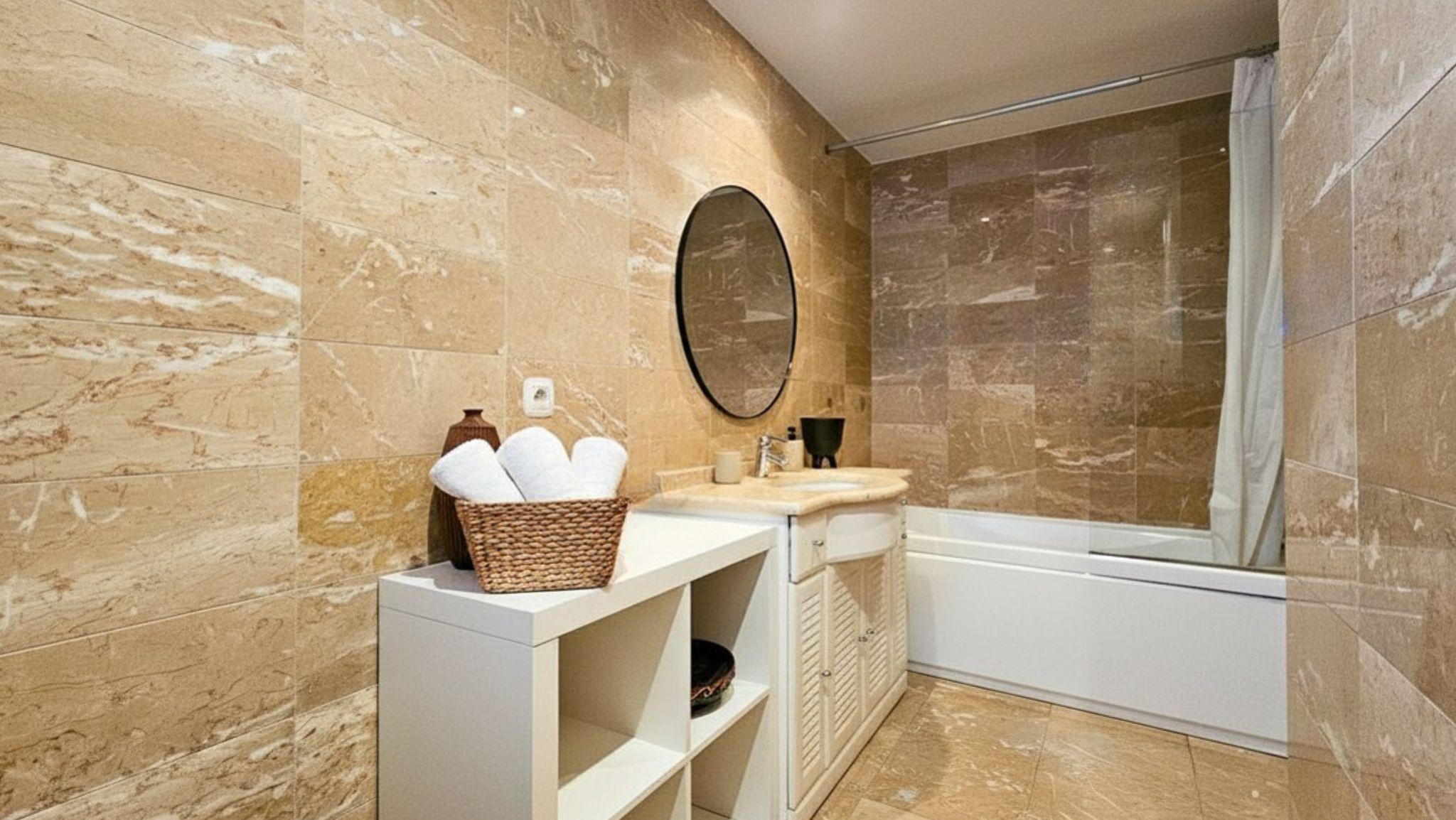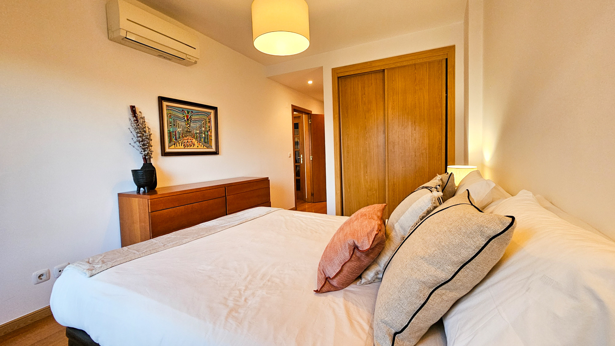Com uma suíte com cama de casal e banheira, e um segundo quarto com duas camas de solteiro e uma charmosa varanda com vista para o nascer do sol, o apartamento preza pelo conforto.