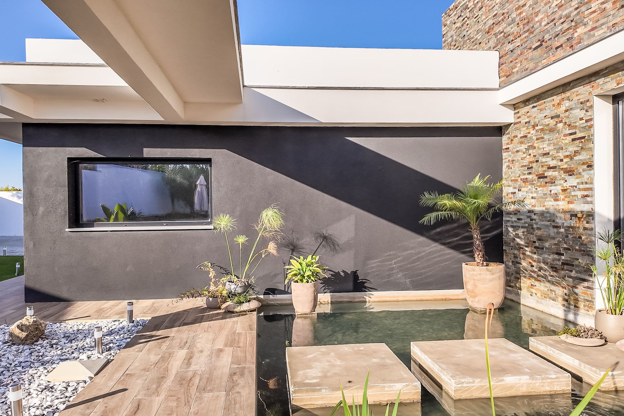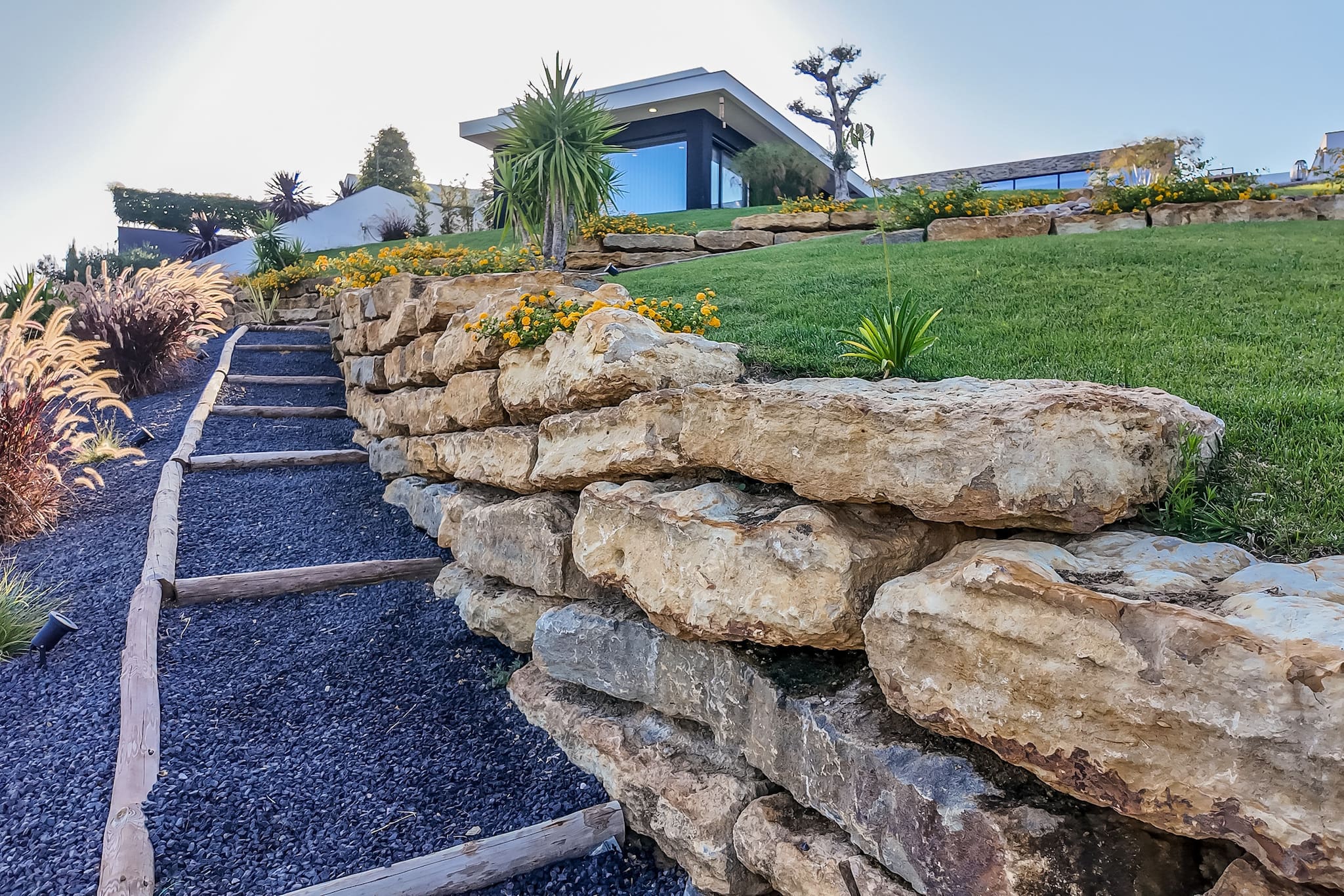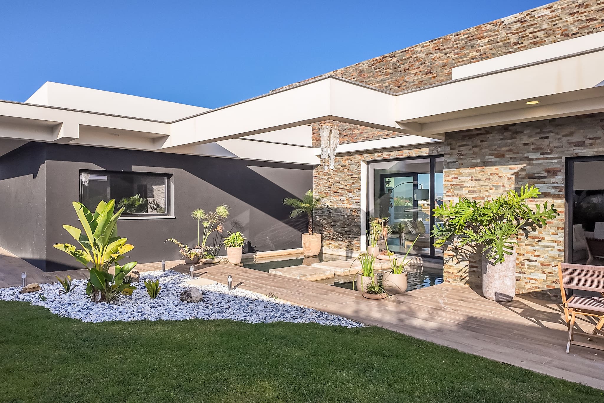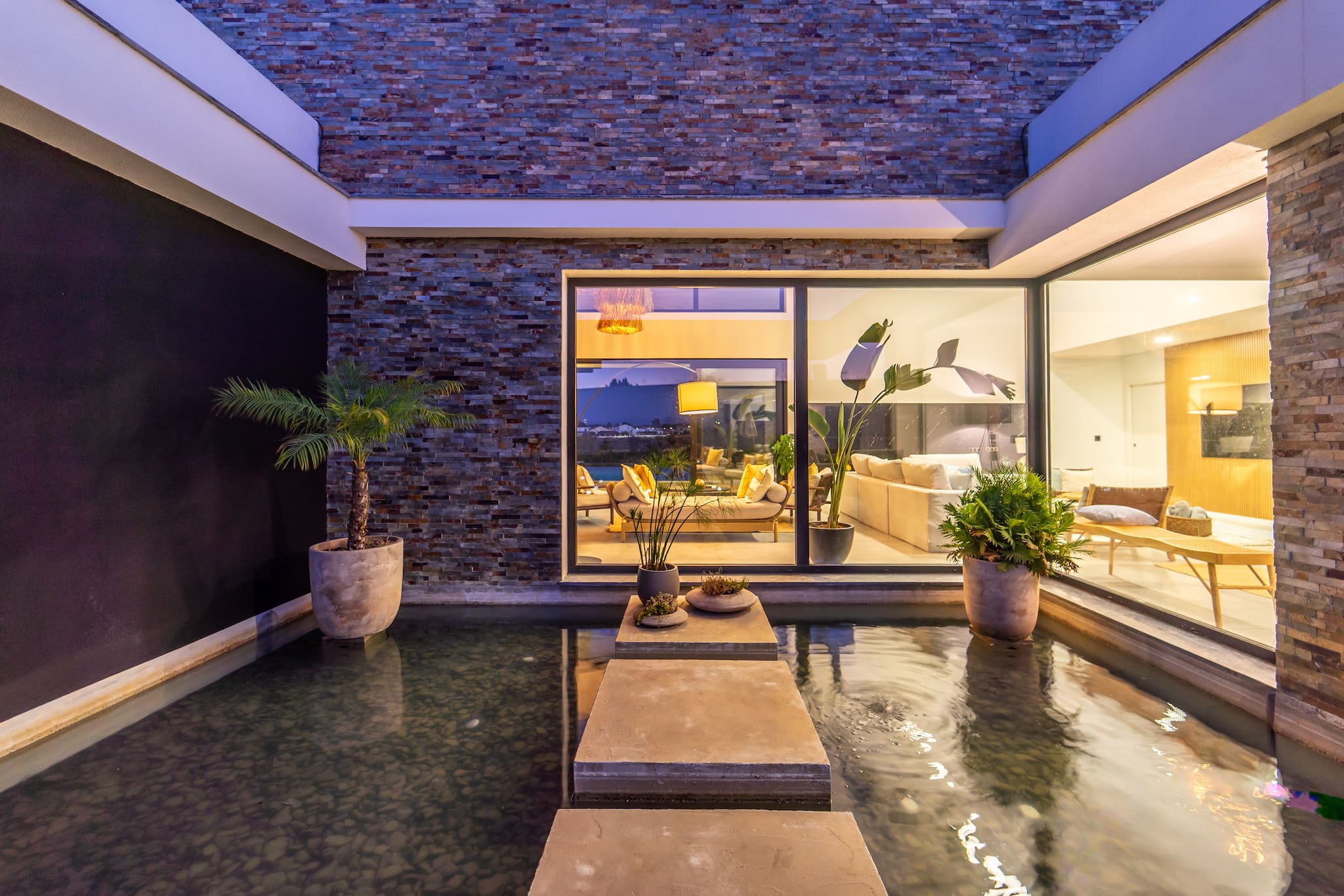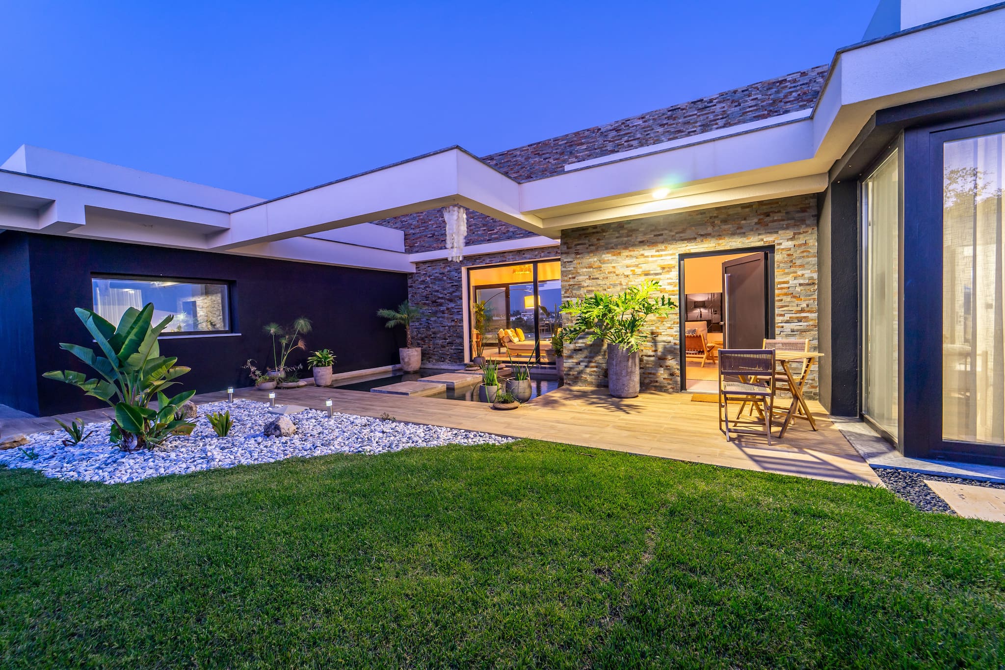 Jardins serenos. Descontraia e divirta-se nos nossos pátios exuberantes e espaçosos, com um belo jardim da frente com um lago tranquilo. A partir da rua, desfrute de um passeio tranquilo pelo caminho sinuoso do nosso jardim inclinado que leva à piscina convidativa, à fogueira acolhedora e às áreas de refeições ao ar livre.