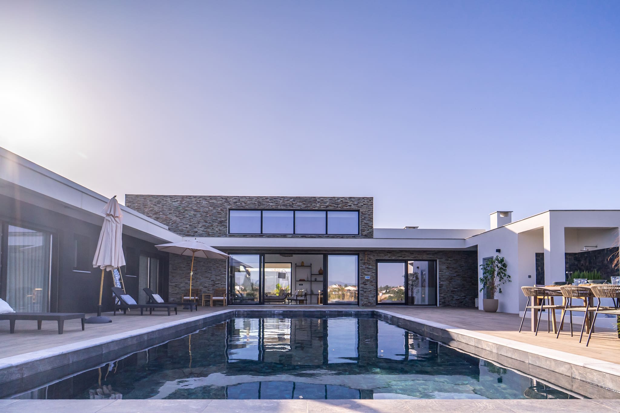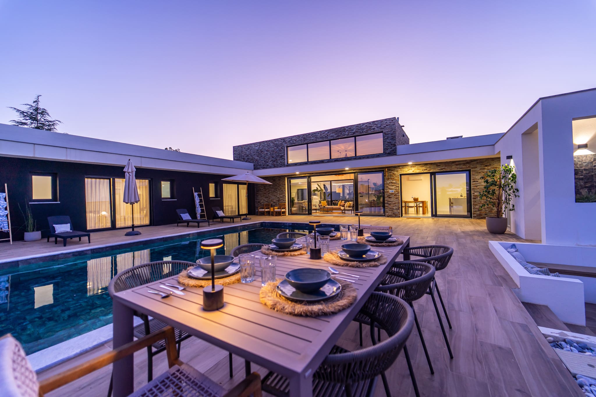 Refeições ao ar livre. Desfrute de refeições ao ar livre na nossa área de refeições ao ar livre designada ao lado da piscina, perfeita para absorver o sol e o ar fresco durante o dia ou apreciar o pôr do sol colorido no céu ao jantar.