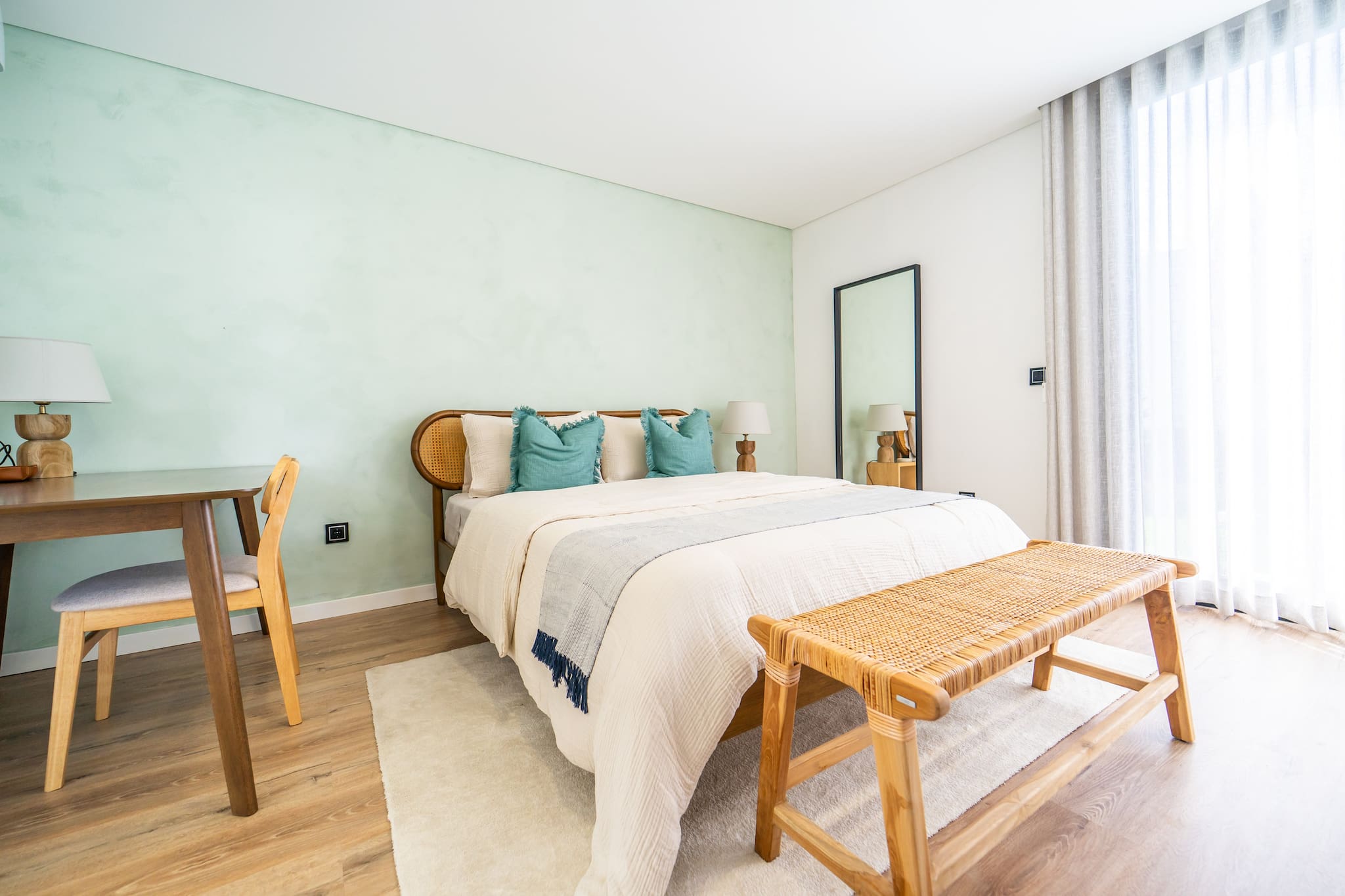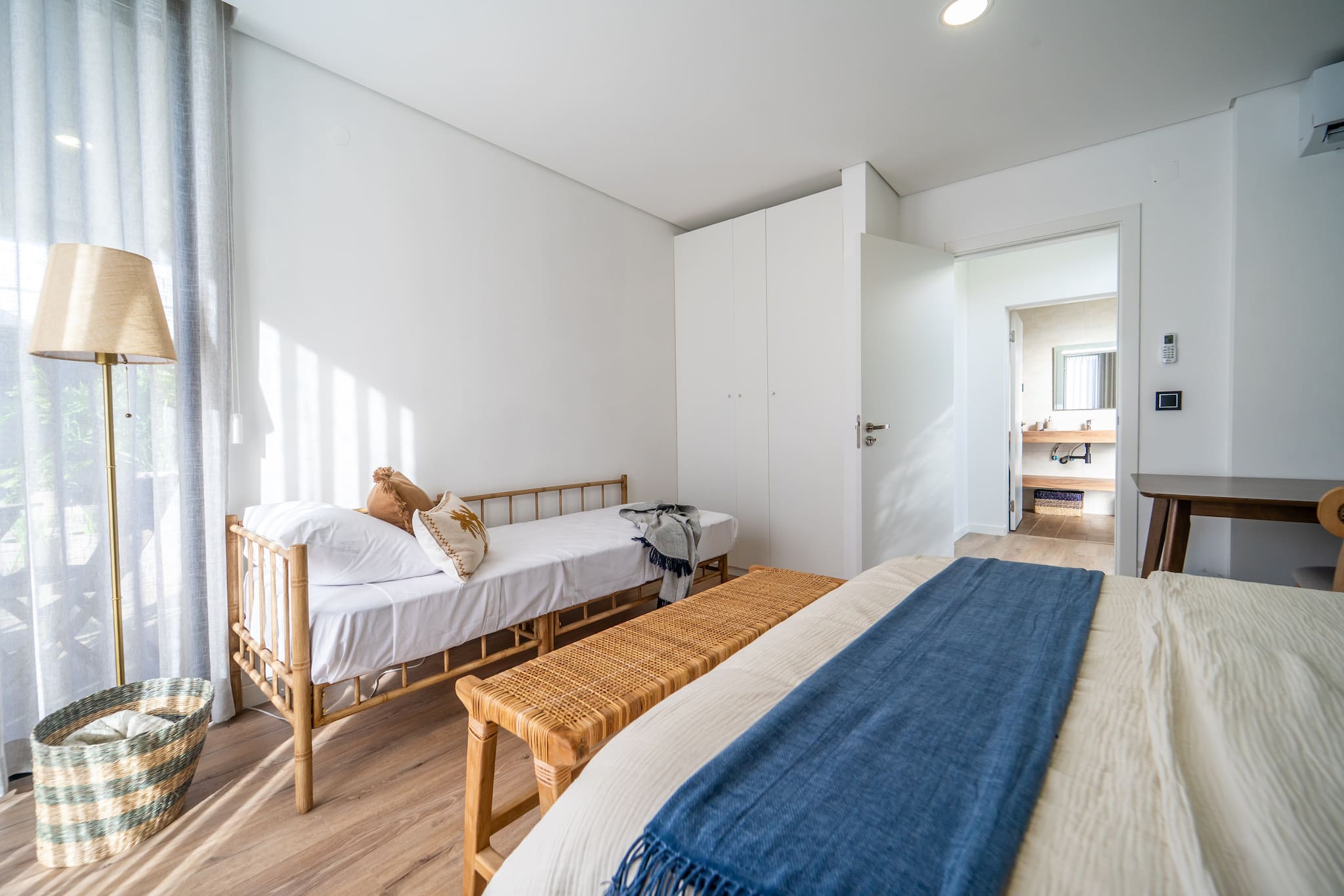 Quatro quartos espaçosos. Retire-se para os nossos quartos, cada um com uma cama queen de pelúcia, uma secretária designada para trabalhar e uma casa de banho privativa, garantindo amplo espaço e conforto para todos os hóspedes. Além disso, dois dos quartos têm camas de dia e berços gratuitos para bebés e crianças pequenas, mediante pedido.